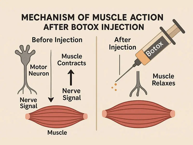 Botox (โบท็อกซ์) คือชื่อทางการค้าของสาร Botulinum toxin type A ซึ่งเป็นโปรตีนที่สกัดจากแบคทีเรีย Clostridium botulinum ใช้ในทางการแพทย์เพื่อ “ยับยั้งการหลั่งสารสื่อประสาทอะซีทิลโคลีน (acetylcholine)” ที่ปลายประสาท ทำให้กล้ามเนื้อที่ถูกฉีดคลายตัวชั่วคราว เมื่อกล้ามเนื้อหยุดหดตัว ริ้วรอยจากการแสดงสีหน้าจะค่อย ๆ จางลง ส่งผลให้ผิวดูเรียบเนียนและอ่อนเยาว์มากขึ้น นอกจากด้านความงามแล้ว โบท็อกซ์ยังถูกใช้ในทางการแพทย์ เช่น รักษาไมเกรน ภาวะเหงื่อออกมากเกิน (hyperhidrosis) หรือตากระตุก เป็นต้น