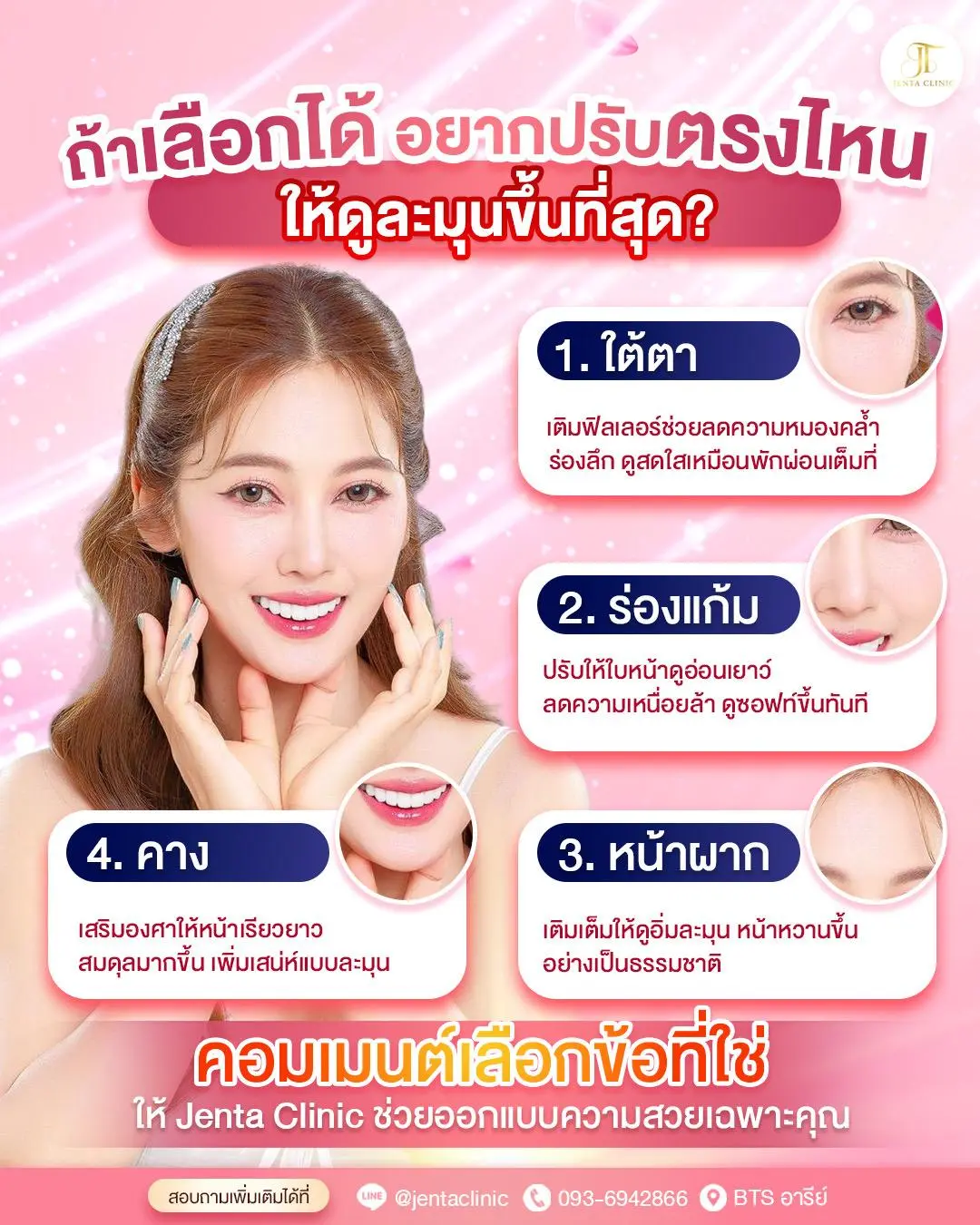 ทุกความงามเริ่มจากความมั่นใจในตัวเอง การปรับในจุดที่ไม่ชอบให้ดูดีขึ้น คือการเติมเต็มเสน่ห์และพลังบวกให้ผู้หญิงคนนั้นดูสดใส มี energy ในตัวเอง และพร้อมที่จะเปล่งประกายในแบบของตัวเอง จุดที่สามารถแก้ไขได้ด้วยฟิลเลอร์ ตัวอย่างเช่น